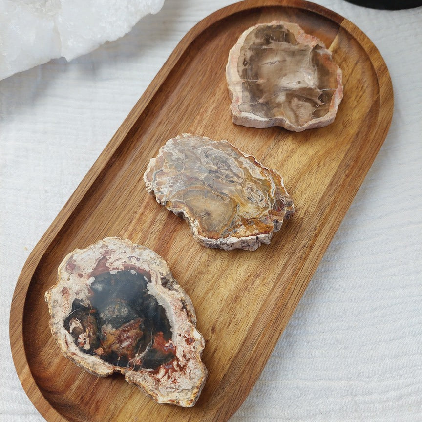 Le bois fossilisé appelé aussi bois pétrifié est comme un pont entre vous et la terre. Il a cette capacité incroyable de vous empêcher de trop laisser votre esprit s'évader et de repousser à plus tard ce que vous pourriez faire maintenant. C'est une pierre d'ancrage puissante qui aide à se sentir plus enraciné, notamment dans les périodes de stress ou d’incertitude. Il aide également à rester centré pendant les méditations.