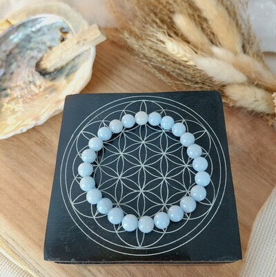 Elle est fabriquée de manière artisanale en Inde. Vous pouvez y ranger à l'intérieur vos pierres afin qu'elles soient à l'abri de la poussière. Vous pouvez également déposer vos bijoux sur la fleur de vie qui est un motif de géométrie sacré pour les purifier et les recharger.