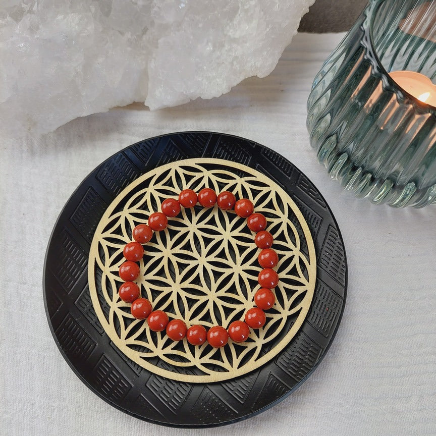 Le jaspe rouge est connu pour renforcer la volonté, le courage, le dynamisme et la motivation, des qualités essentielles pour mener à bien ses projets et atteindre ses objectifs personnels. Il stimule la circulation sanguine ce qui contribue à apporter plus d'énergie et de vitalité au corps.