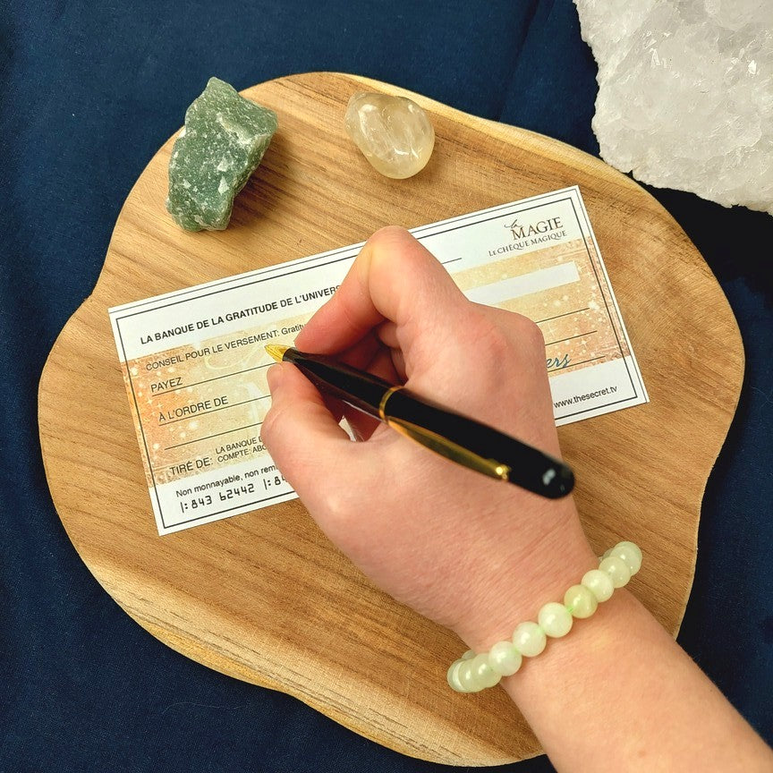 • 1 chèque d'abondance à remplir : outil puissant de visualisation et de manifestation, ce chèque symbolique vous permet d'activer la loi d'attraction