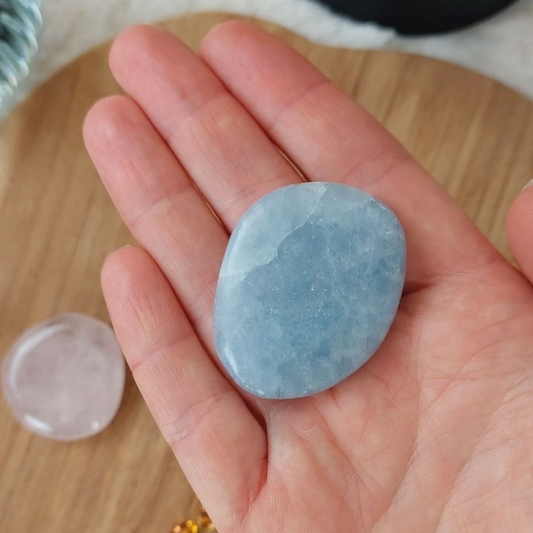• une calcite bleue qui crée une atmosphère calme et paisible idéale pour la chambre de bébé. Elle favorise un sommeil profond et réparateur.