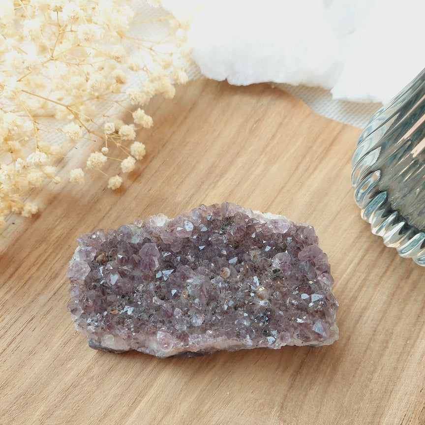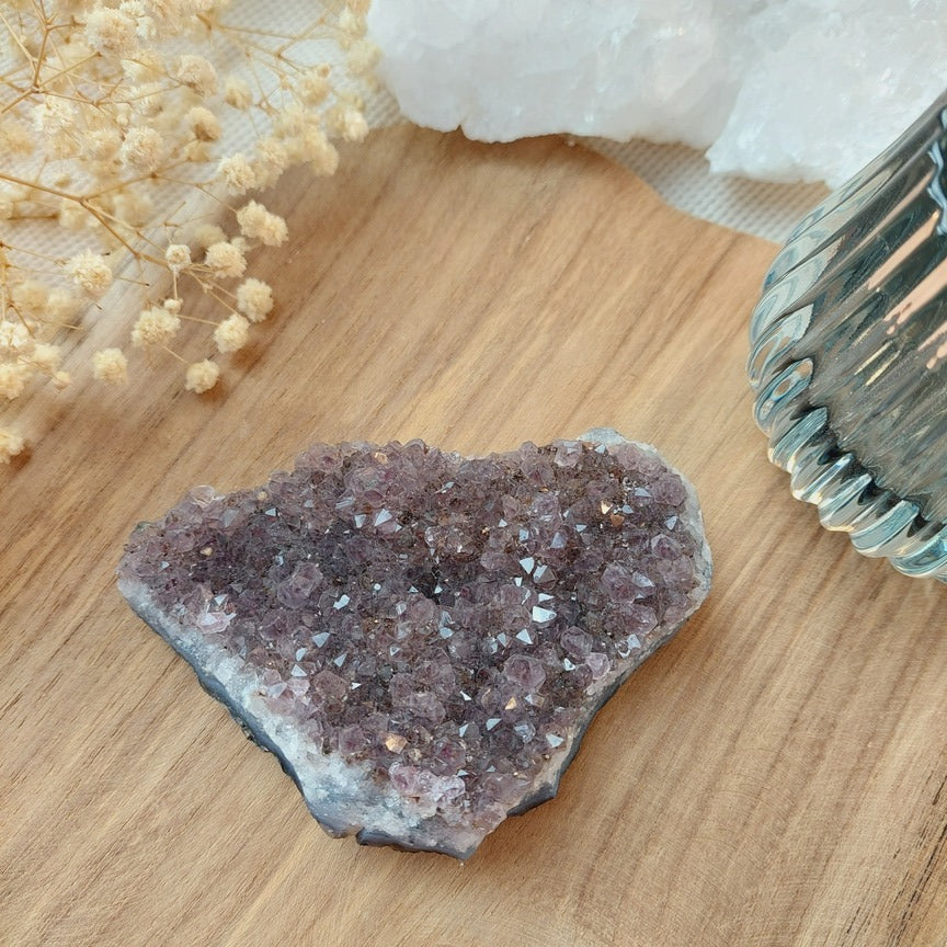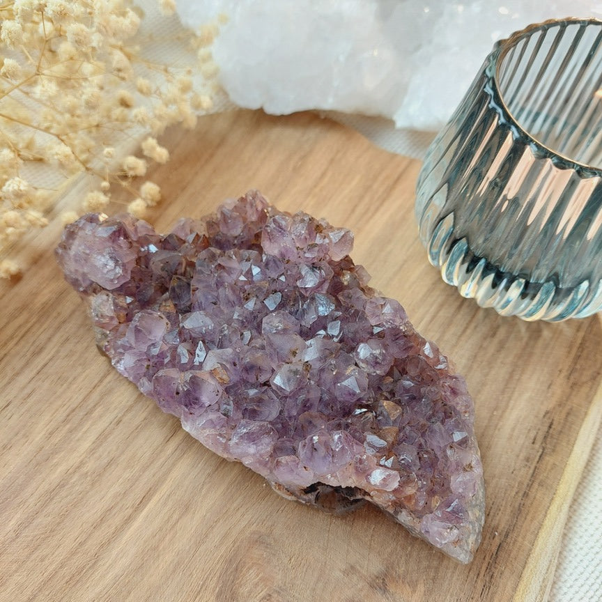 L'améthyste aide à développer la concentration et la paix intérieure. Elle facilite la détente physique, émotionnelle et mentale. Elle est recommandée pour apaiser les maux de tête et les migraines.