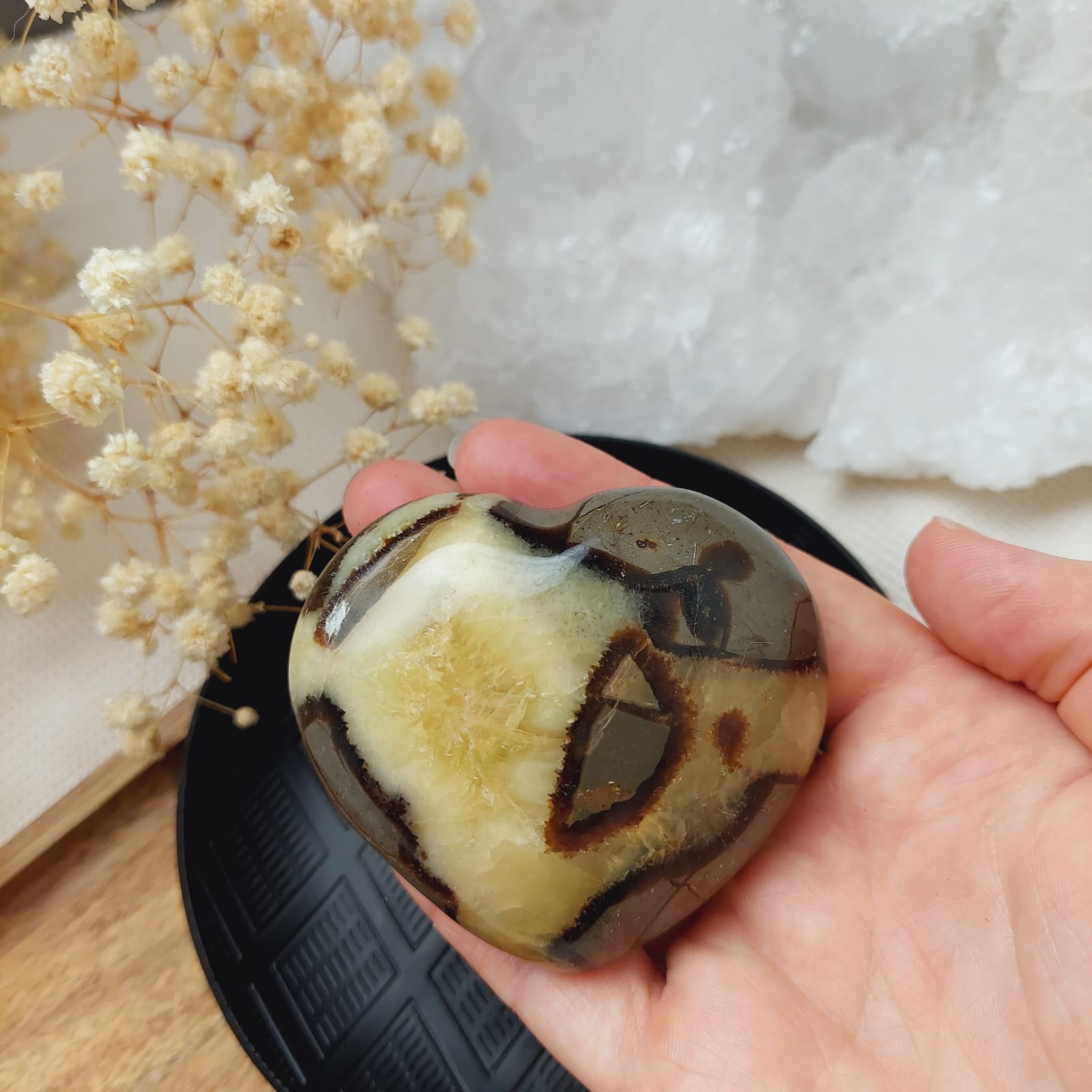 La septaria que l’on appelle aussi « la pierre du dragon » installe une grande paix intérieure par sa douceur naturelle. Elle soulage les maux d’estomac. Elle peut mettre fin à des blocages liés à des évènements passés douloureux en vous aidant à identifier les racines de vos problèmes. Elle renforce la patience et la tolérance. Elle aide à se confronter à ses démons du passé avec calme pour reprendre sa vie en main et se consacrer à son futur.