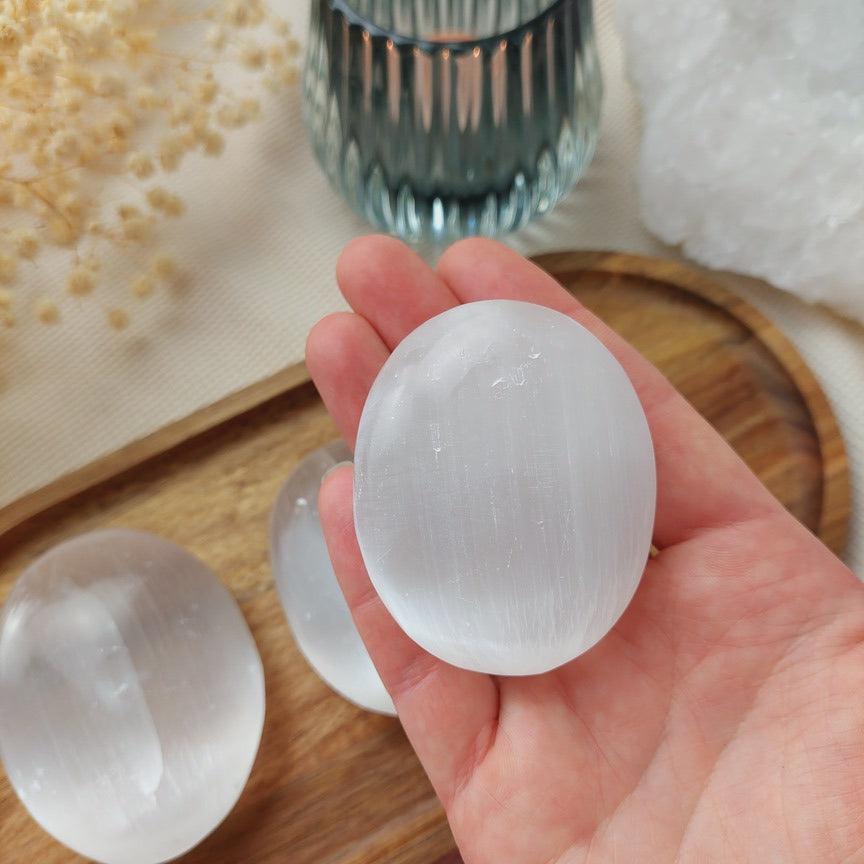 La sélénite est réputée pour ses propriétés calmantes et apaisantes. Elle favorise la clarté d'esprit et aide à dissiper la confusion. Sur le plan physique, la sélénite soulage les maux liés au stress et renforce le système immunitaire.