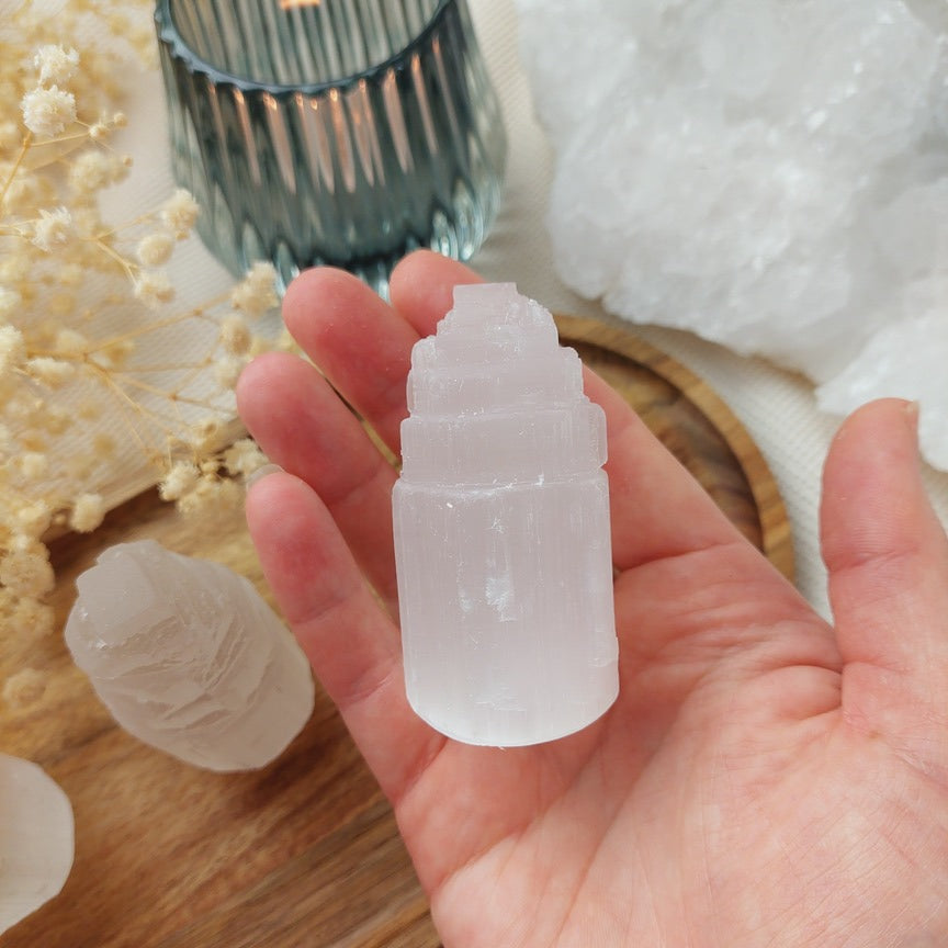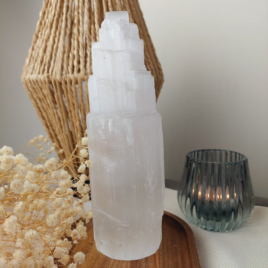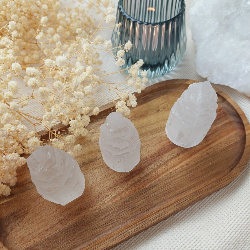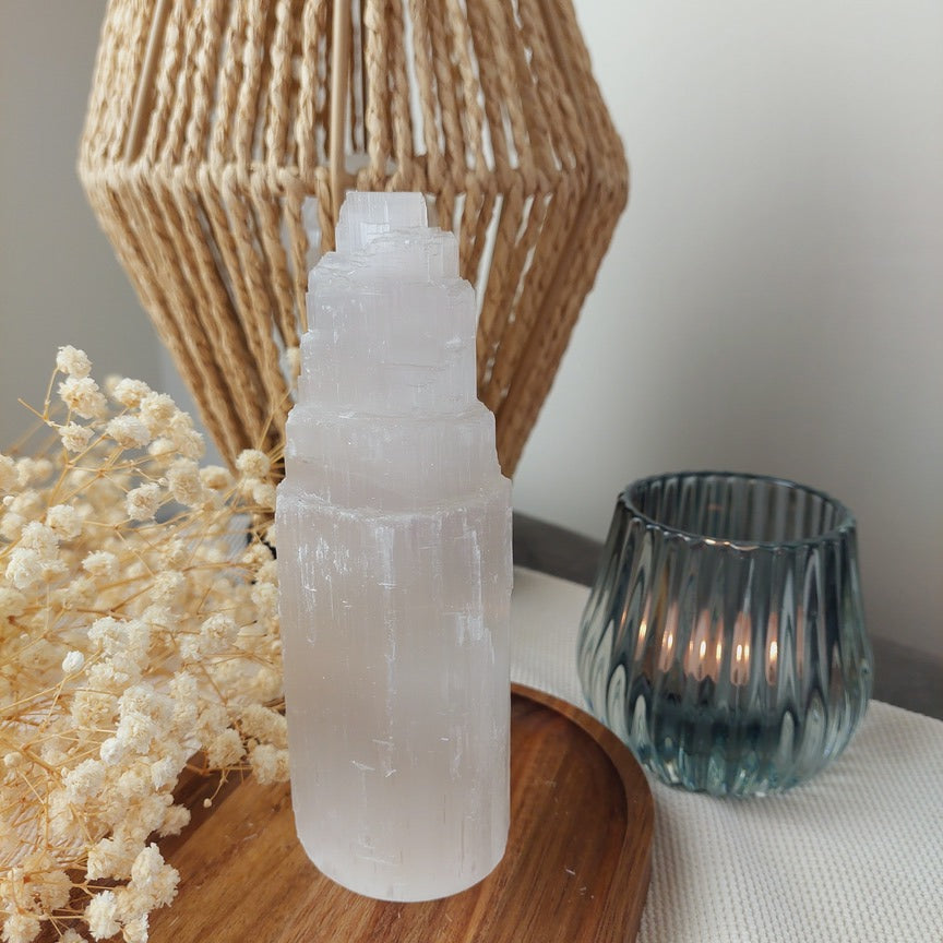 La sélénite est excellente pour apaiser l'esprit, élever la conscience spirituelle et à retrouver un sommeil paisible. C'est une pierre idéale pour créer une atmosphère douce et reposante dans une chambre à coucher.